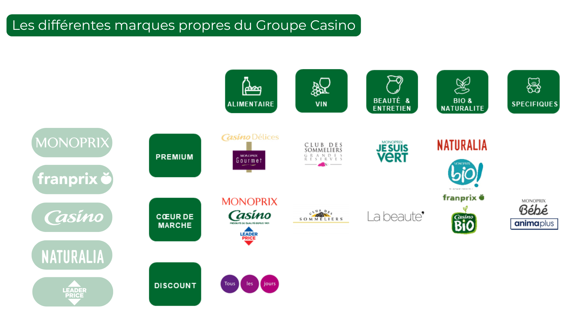 En France, Casino est le distributeur ayant le plus grand nombre de produits à marques propres.
